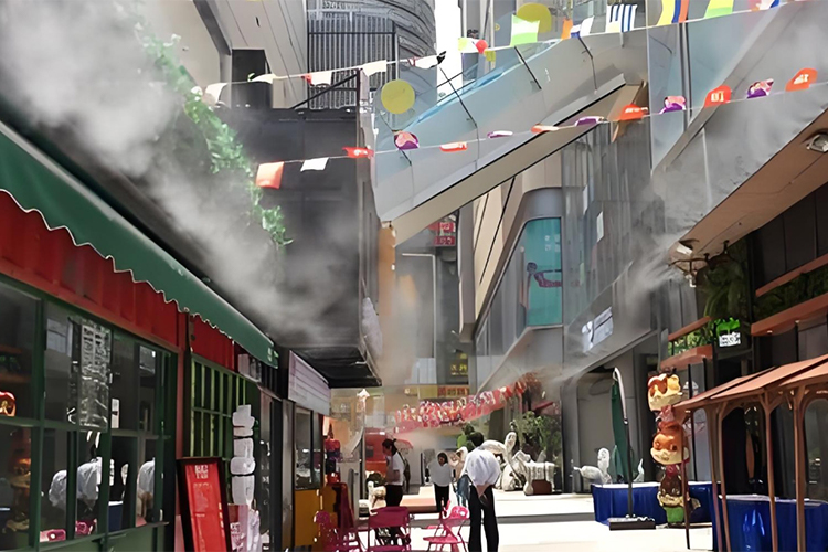 喷雾系统可将商业街温度降至25℃左右的人体舒适范围。实测显示,系统运行后不仅能快速降温,还能有效抑制空气中的灰尘和病菌,改善商业街空气质量。这种降温方式特别适合人流密集的步行街、广场等开放式空间,让游客在炎热夏季也能享受凉爽的购物环境。